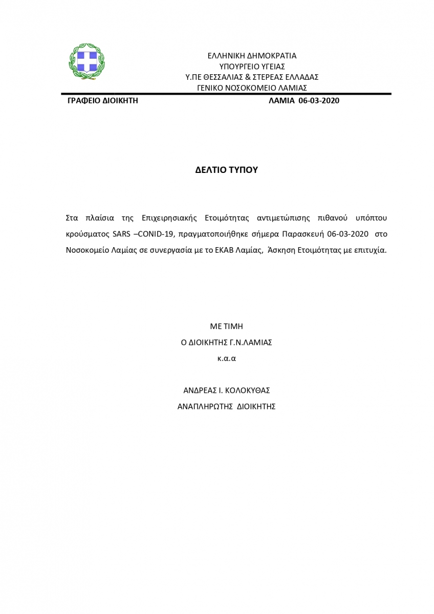 ΑΣΚΗΣΗ ΕΤΟΙΜΟΤΗΤΑΣ ΓΙΑ ΤΟΝ ΚΟΡΟΝΟΪΟ SARS-CoV-2