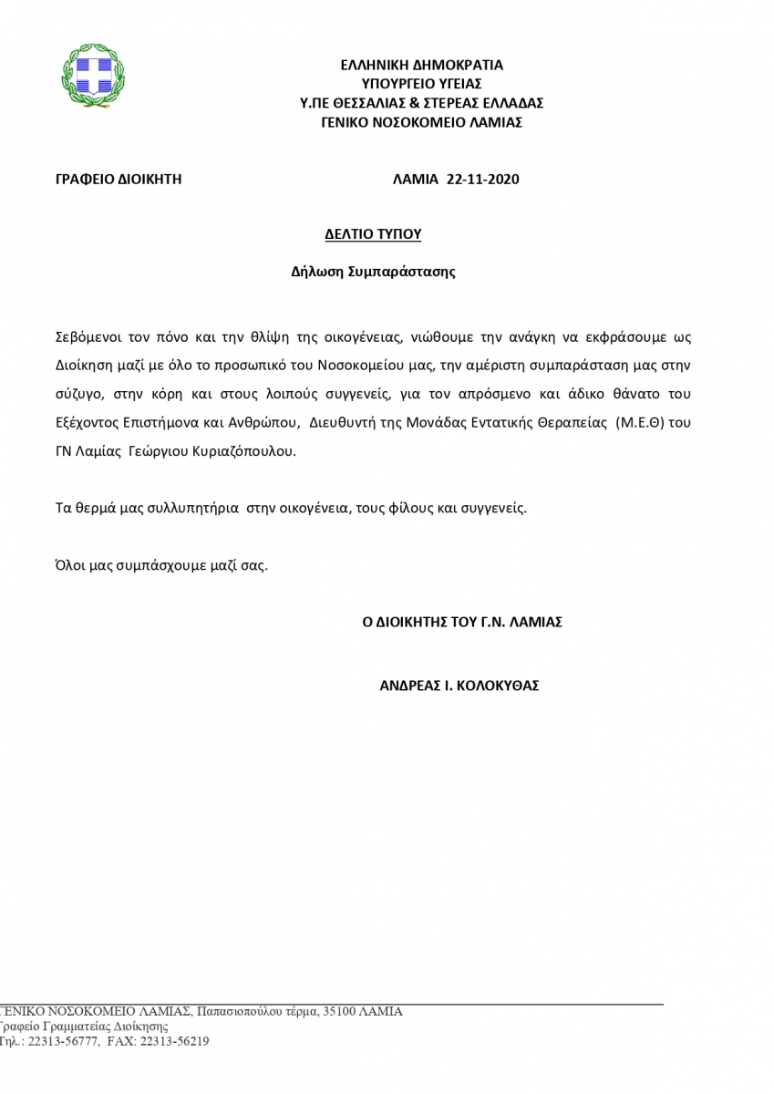 ΔΕΛΤΙΟ ΤΥΠΟΥ - ΔΗΛΩΣΗ ΣΥΜΠΑΡΑΣΤΑΣΗΣ