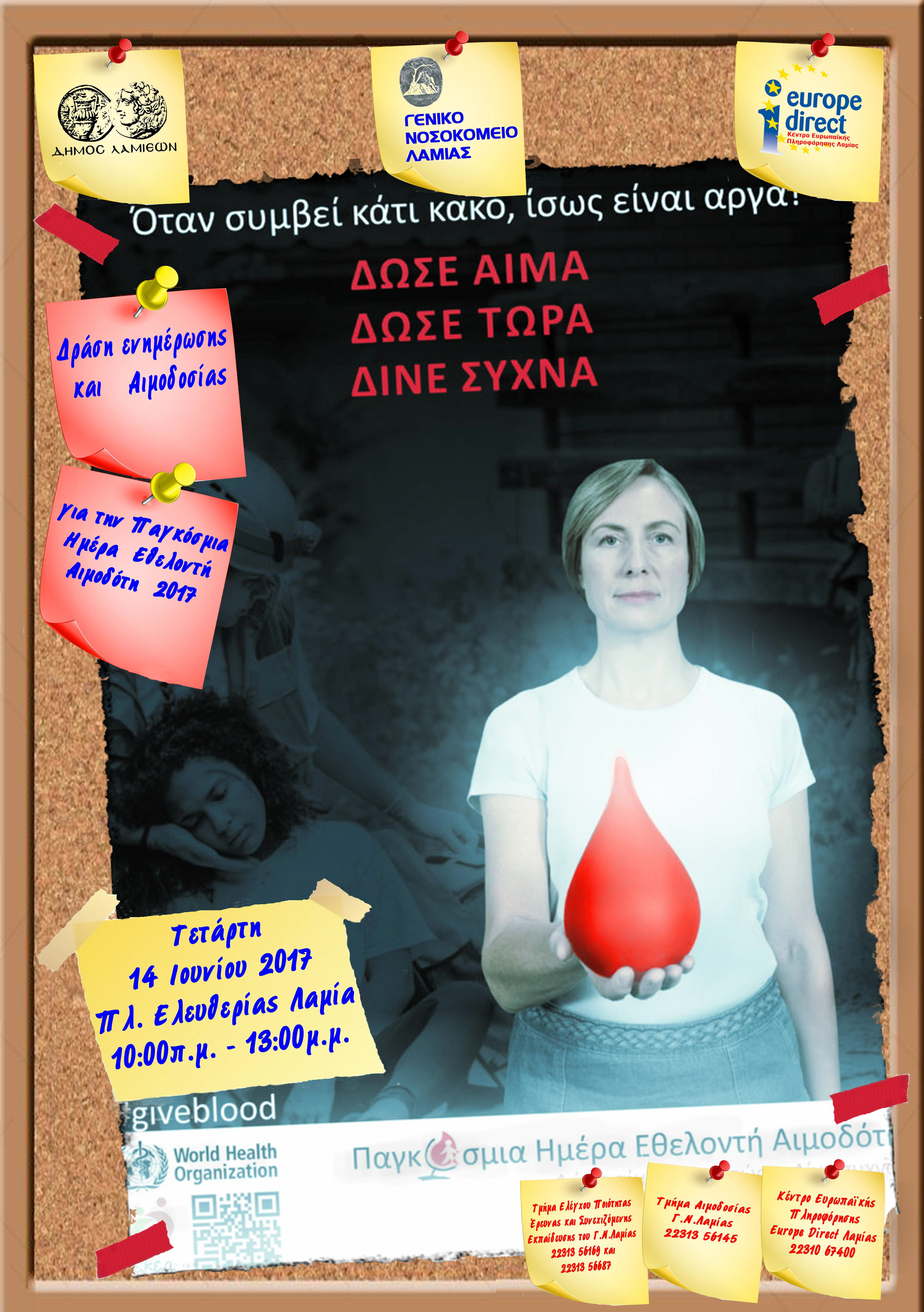 ΔΕΛΤΙΟ ΤΥΠΟΥ ΓΙΑ ΤΗΝ ΠΑΓΚΟΣΜΙΑ ΗΜΕΡΑ ΕΘΕΛΟΝΤΗ ΑΙΜΟΔΟΤΗ