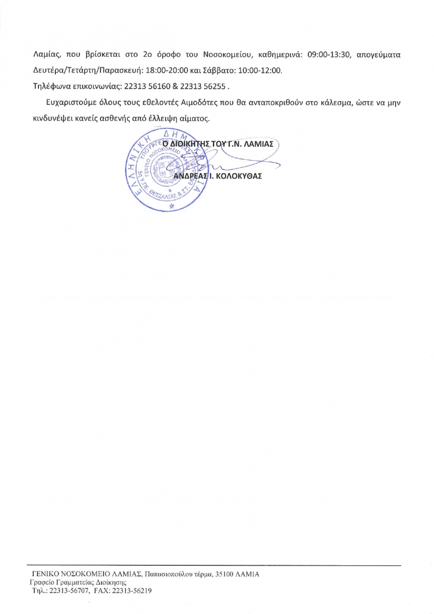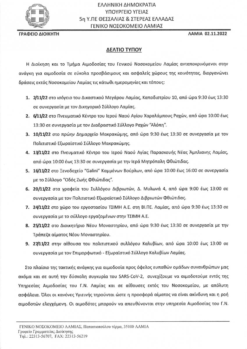ΔΕΛΤΙΟ ΤΥΠΟΥ ΑΙΜΟΔΟΣΙΑ ΝΟΕΜΒΡΙΟΣ 2022