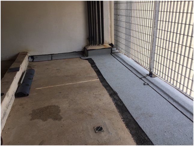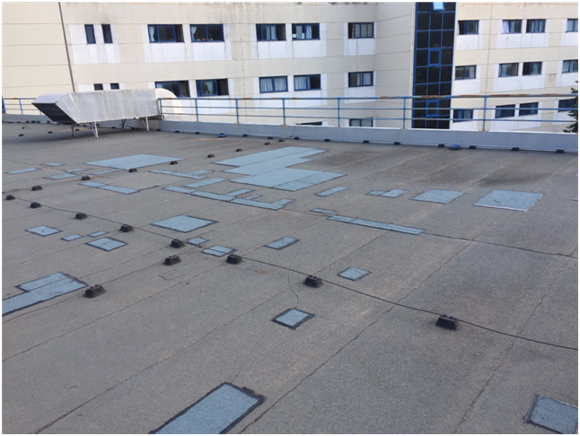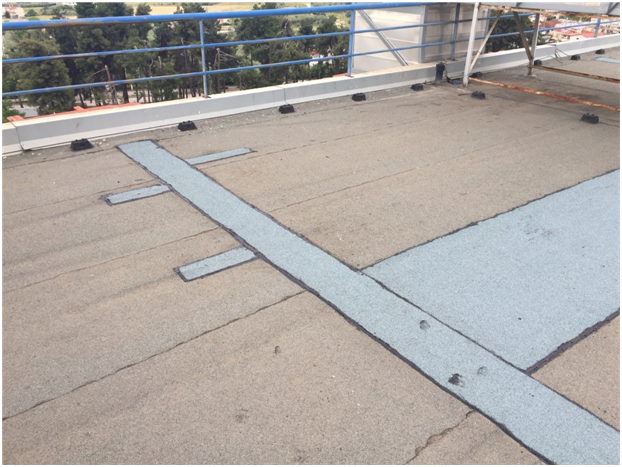 3. Στο δώμα του 6ου ορόφου έγινε παρέμβαση με επικόλληση ασφαλτικής μεμβράνης σε τμήματα όπου υπήρχαν φθορές μετά από έλεγχο και εκτίμησης όλης της επιφάνειας του.