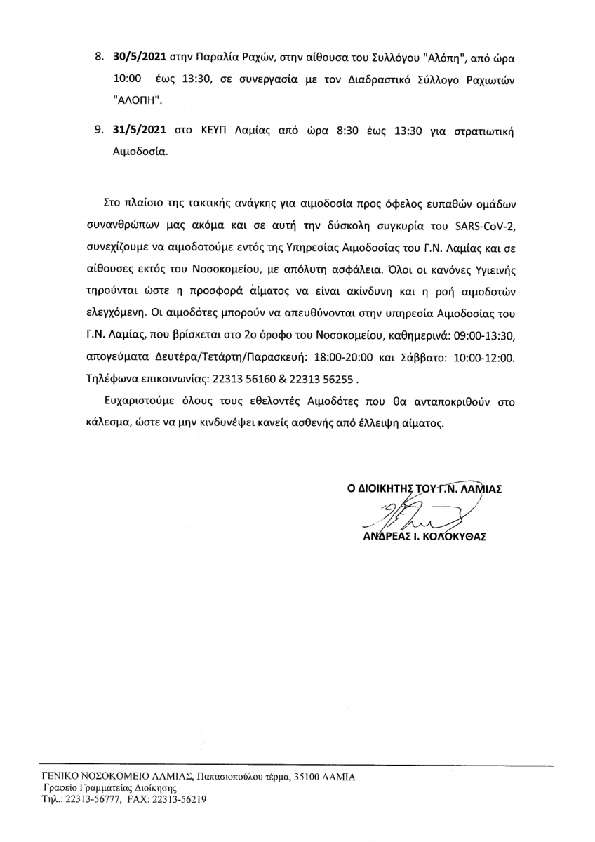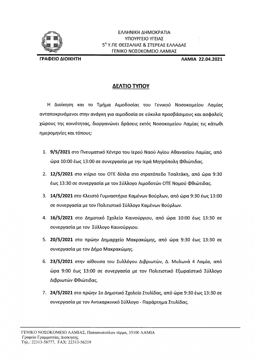 ΔΕΛΤΙΟ ΤΥΠΟΥ ΑΙΜΟΔΟΣΙΑΣ ΜΑΪΟΣ 2021