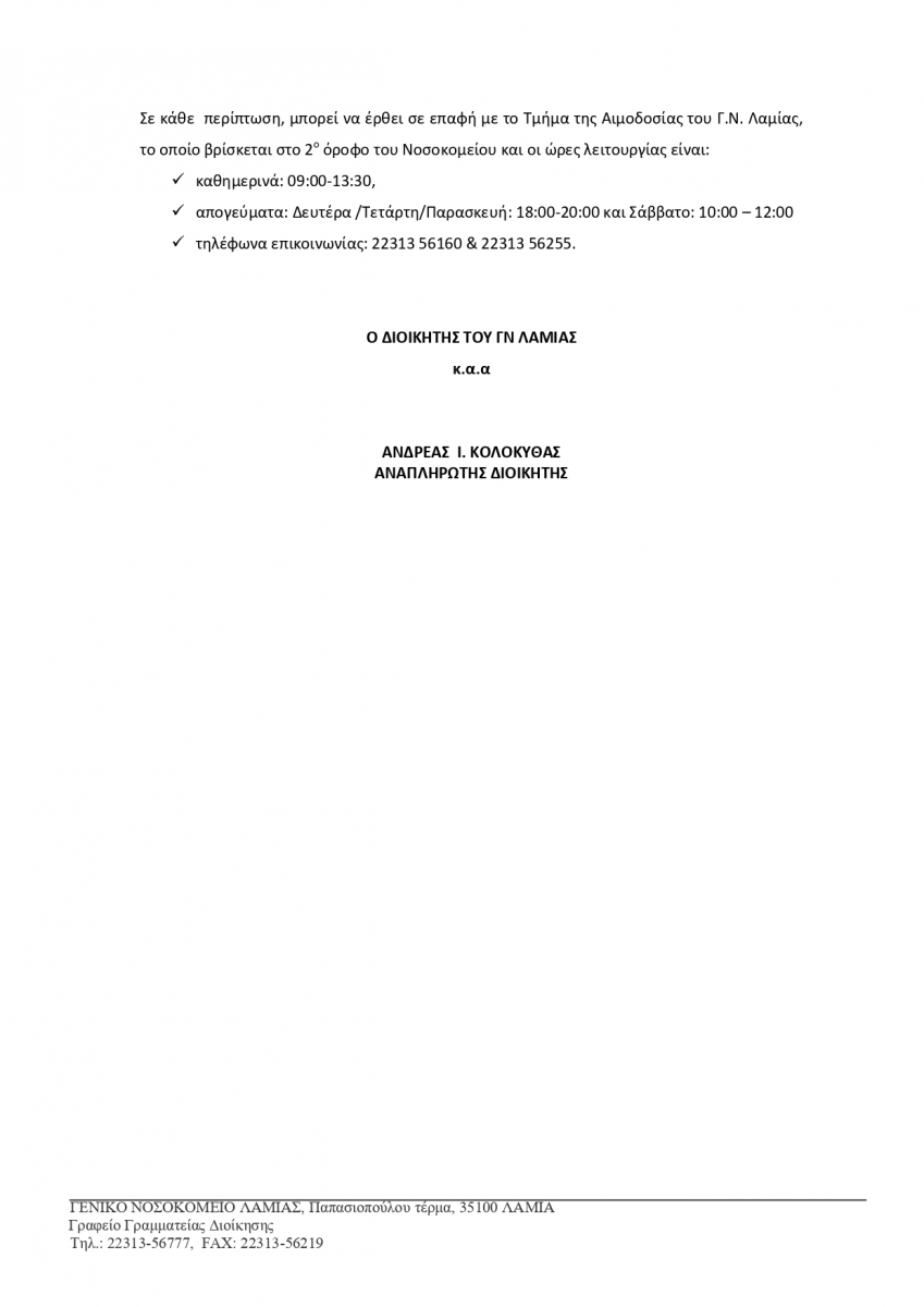 Διαύγεια Νοσοκομείου Λαμίας