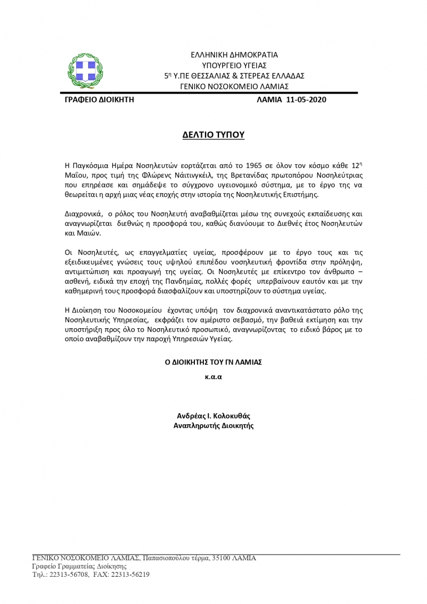 ΔΕΛΤΙΟ ΤΥΠΟΥ - ΠΑΓΚΟΣΜΙΑ ΗΜΕΡΑ ΝΟΣΗΛΕΥΤΗ