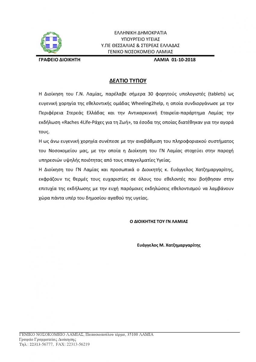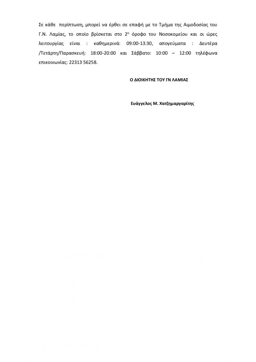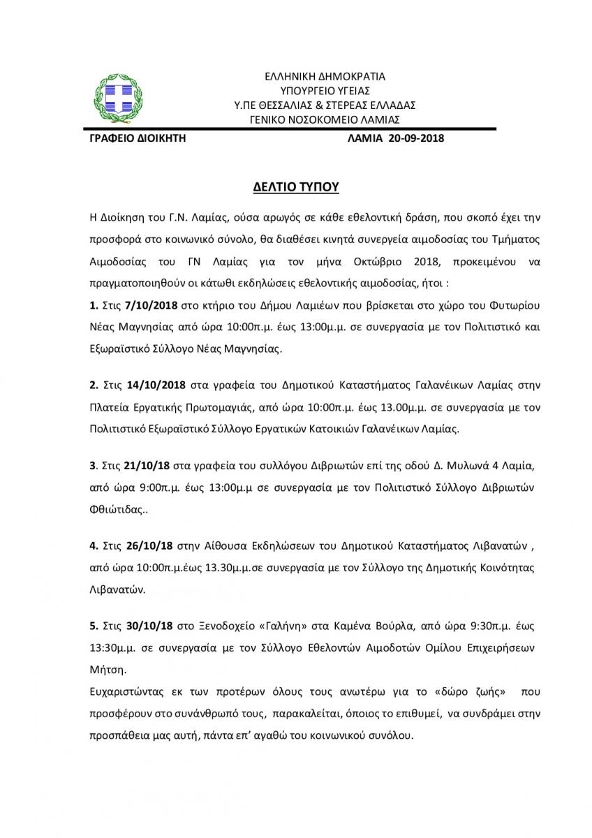 ΔΕΛΤΙΟ ΤΥΠΟΥ - ΕΘΕΛΟΝΤΙΚΗ ΑΙΜΟΔΟΣΙΑ