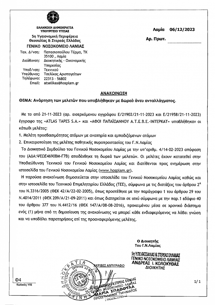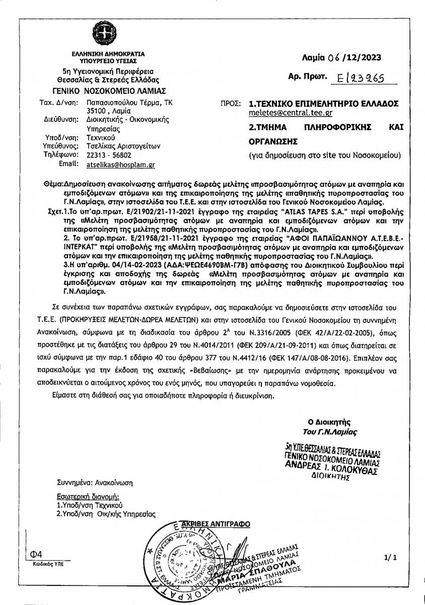 ΔΩΡΕΑ ΜΕΛΕΤΗΣ ΠΡΟΣΒΑΣΙΜΟΤΗΤΑΣ ΚΑΙ ΠΑΘΗΤΙΚΗΣ ΠΥΡΟΠΡΟΣΤΑΣ