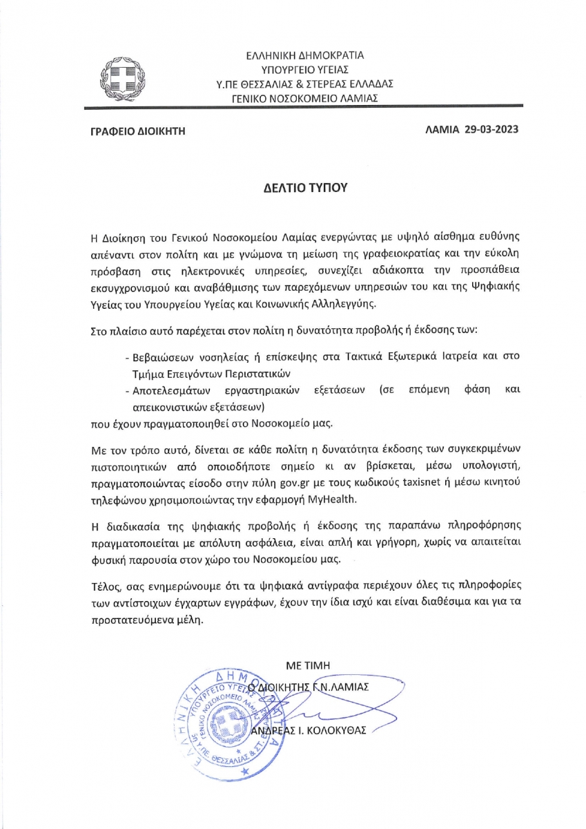 Διαύγεια Νοσοκομείου Λαμίας